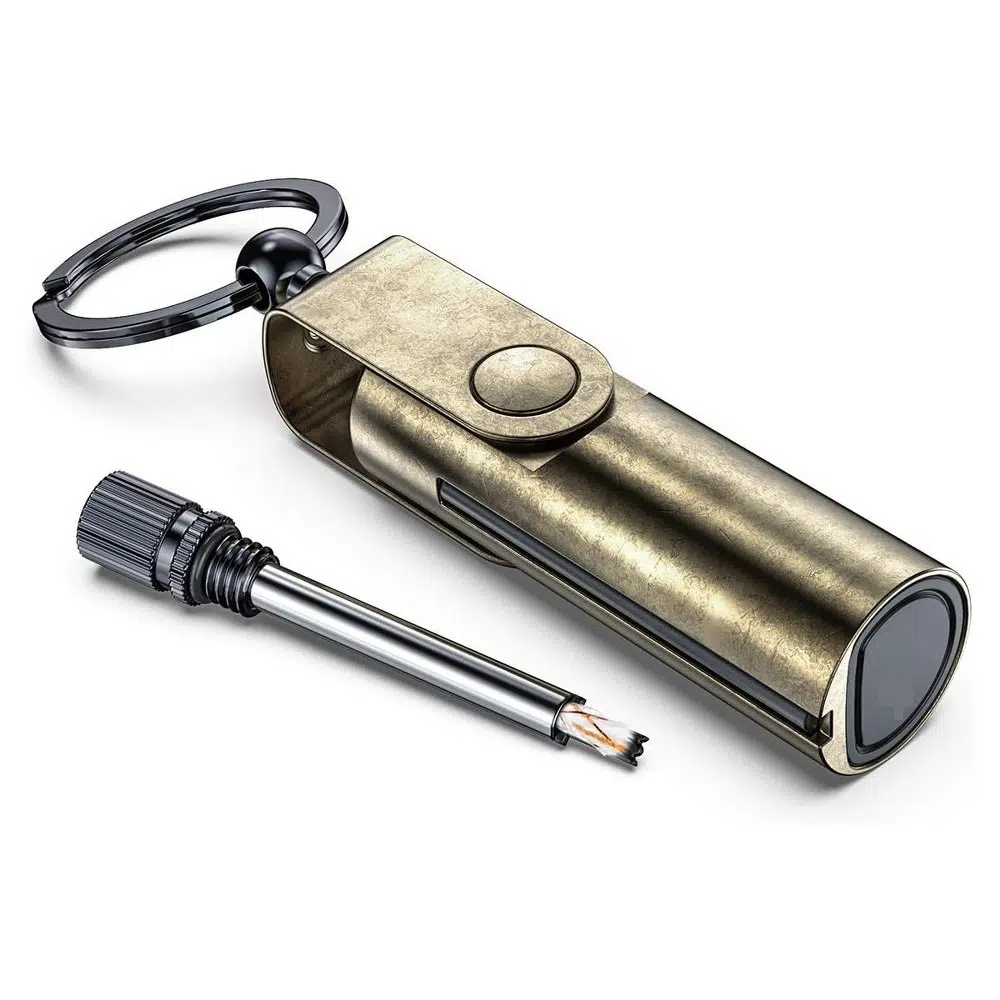 Minimalist tasarımı ve küçük boyutlarına rağmen yüksek performans sunan bu ürün, acil durumlarda da güvenle kullanılabilir. 7,5 x 1,8 x 1,8 cm ölçüleri ve yalnızca 45 gram ağırlığıyla taşınabilirliği ön planda tutar. 2,45 cm çapındaki anahtarlık halkası sayesinde her zaman yanınızda taşıyabileceğiniz pratik bir ateş başlatıcıdır.