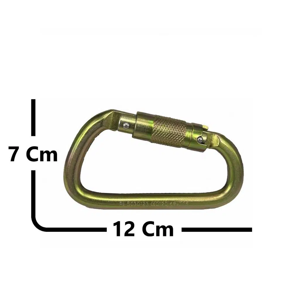 Çelik Üçlü Kilitli Karabina, yüksek güvenlik ve dayanıklılık gerektiren kullanım alanları için özel olarak tasarlanmıştır. Sağlam çelik malzemeden üretilen bu karabina,