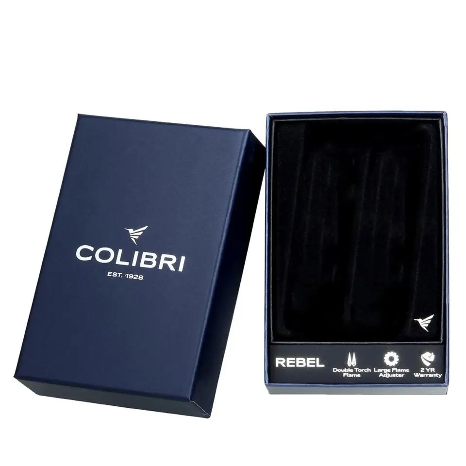Colibri Rebel çift jet alevli puro çakmağı, performans ve stilden ödün vermek istemeyen puro tutkunları için tasarlanmış cesur ve güvenilir bir aksesuardır.